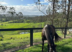 Balleyrinn’s Olympic-sized indoor arena (60m x 20m) sits within a natural amphitheatre overlooking the Mary Valley, available for hire by the hour or day for self-led practice, events, and showcases. It features a premium Martin Collins waxed fibre surface, angled wooden kick wall, and equestrian lighting for evening rides. Complimentary facilities and optional extras include stables, day yards, a sound system, catering, and a round yard.